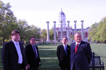 Kepala Dinas Tenaga Kerja dan Transmigrasi (Disnakertrans) Musi Banyuasin (Muba) Herryandi Sinulingga (kedua dari kiri) di kantor BPJS Ketenagakerjaan. (FOTO: Dok Disnakertrans Muba) KINGDOMSRIWIJAYA,...