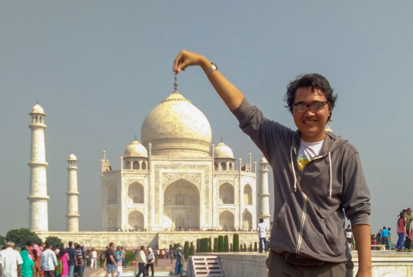 Keluar dari stasiun kami diserbu beberapa orang sopir taksi yang menawarkan jasa untuk mengantar ke Taj Mahal. “Ternyata tidak berbeda dengan Indonesia, begitu keluar stasiun langsung diserbu sopir taksi,” kata seorang dari kami. Dengan taksi rombongan kami akhir tiba di pelataran Taj Mahal. Bangunan megah dengan arsitekturnya yang indah terlihat di depan mata.