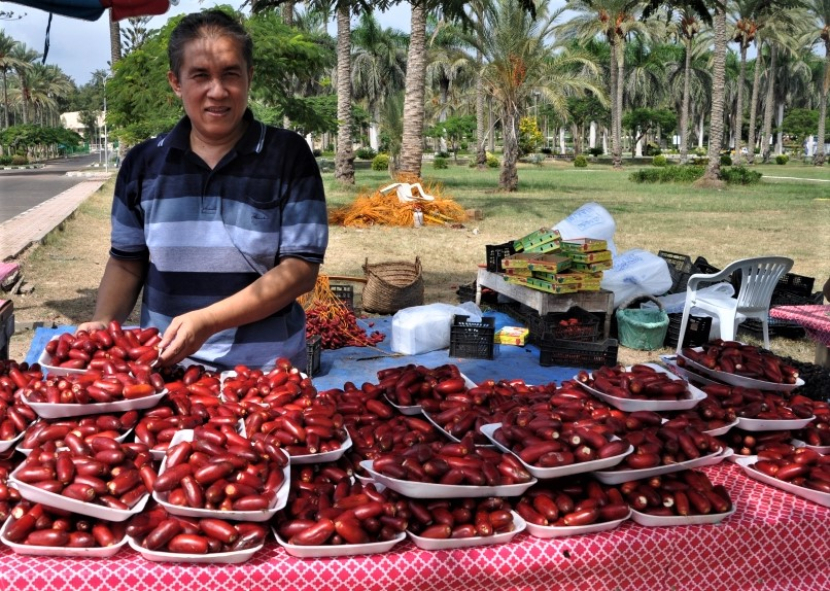 Jemaah umrah atau haji selalu membeli kurma sebagai oleh-oleh sebelum kembali ke Indonesia. (FOTO-FOTO : Maspril Aries)