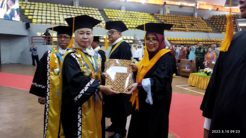 7. Prof. Dr. Risma Margaretha S, M.Hum., sebagai Guru Besar bidang Ilmu Antropologi. Orasi ilmiah yang disampaikan berjudul “Komodifikasi Kekerabatan dalam Hubungan Multikultural: Produksi dan Reproduksi Nilai Budaya Piil Pesenggiri Etnik Lampung”. (maspril aries)