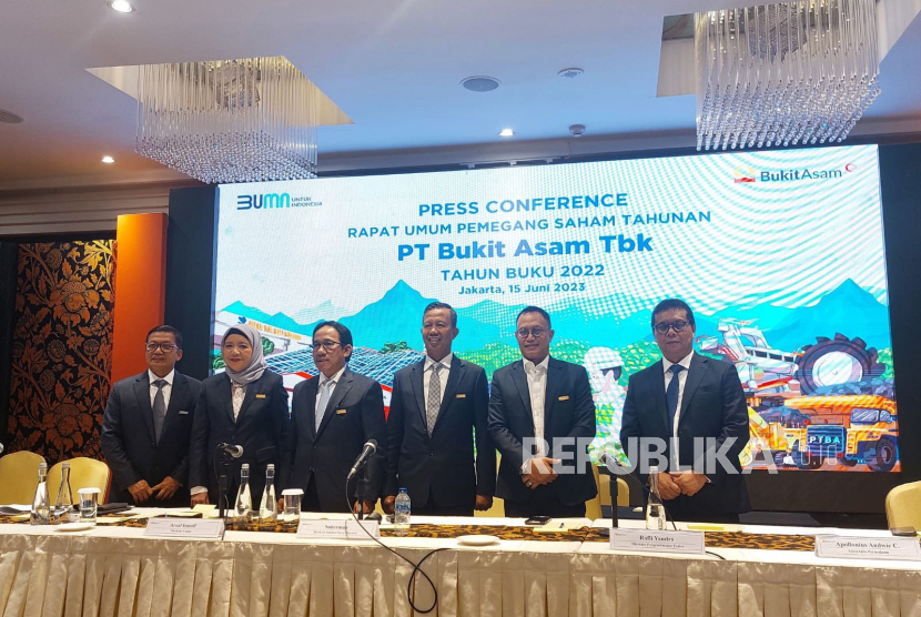 Direksi PTBA Tbk pada RUPST Tahun Buku 2022. (FOTO : Republika/Dedy Darmawan Nasution)