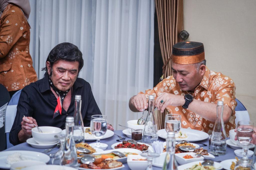 Rhoma Irama dan Bupati Muba Apriyadi makan malam bersama menu pindang ikan tapa. (FOTO : Dinkominfo Muba)