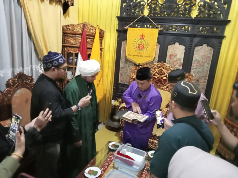 Ustaz Asep Syaifullah Al–Fadani yang kini bermukim di Malaysia, bersilaturahmi dengan SMB IV Jaya Wikrama RM Fauwaz Diradja di istana adat Kesultanan Palembang di Jalan Sultan M Mansyur setelah sebelumnya hadir pada Tabligh Akbar dan Ruqyah Massal di Masjid Baiturrahman Bank Raya, Palembang, Selasa (6/2).