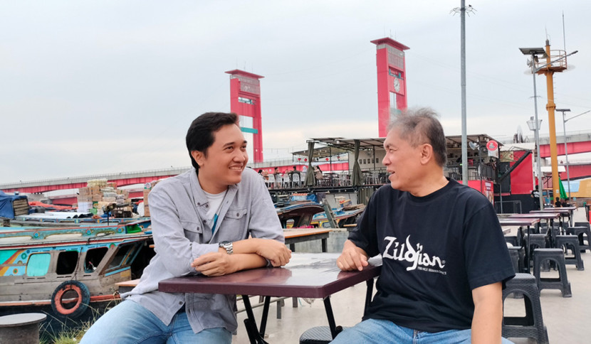 Menyaksikan kegagahan jembatan Ampera dari tepian Musi. (FOTO: Aina Rumiyati Aziz)