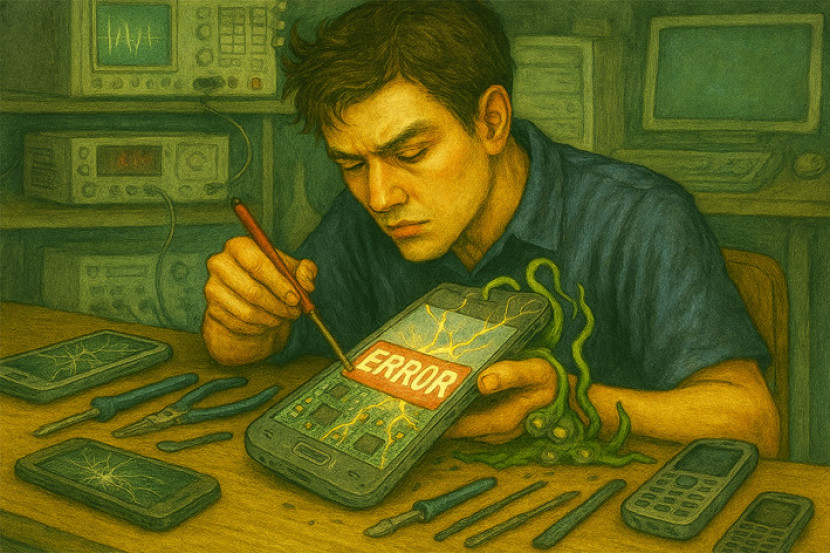 Seorang teknisi muda memeriksa ponselku dengan seksama. “Ponsel Anda terkena malware“, katanya. “Sepertinya Anda pernah mengunduh aplikasi tidak resmi atau membuka tautan mencurigakan”.