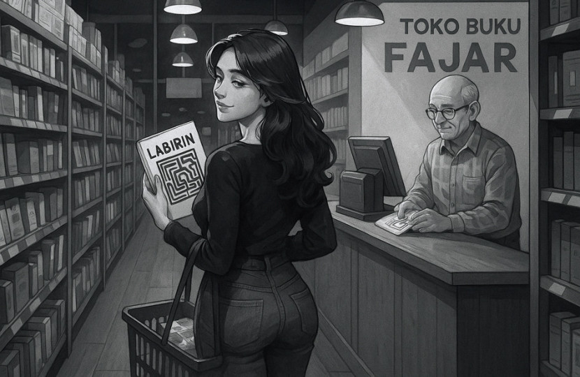 Lorong-lorong mal mulai terasa seperti labirin sungguhan. Toko-toko yang tadi terasa familiar, sekarang terasa asing. Dia berbelok ke kiri, melewati toko mainan anak-anak dengan patung-patung karakter kartun besar. Lalu ke kanan, melewati department store yang penuh dengan wewangian. Naik eskalator, turun lagi. Semuanya terlihat sama. Kaca, marmer, cahaya neon.