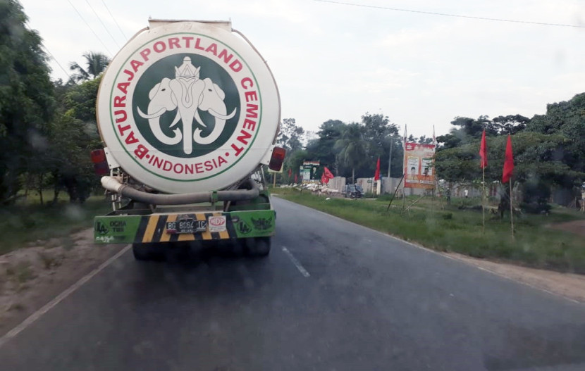 Mobil semen curah Semen Baturaja melintas di jalan Sumatera Selatan. (FOTO: Maspril Aries)