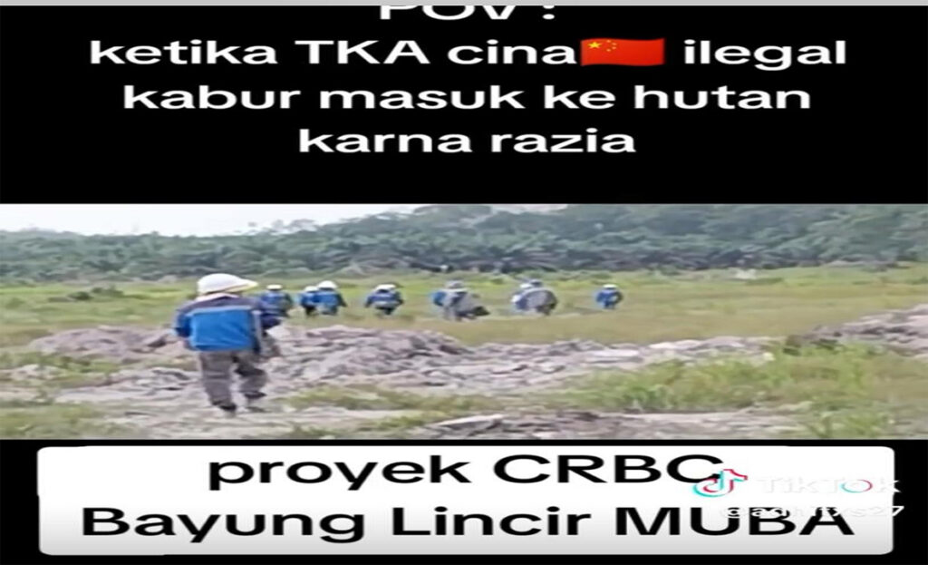 Narasi yang menyertainya menyebutkan adanya Tenaga Kerja Asing (TKA) asal Cina ang diduga ilegal dan melarikan diri ke hutan saat dilakukan razia di kawasan proyek PT China Road and Bridge Construction Indonesia (CRBCI), Bayung Lencir. Video itu cepat menyebar, dibagikan berulang kali, dan memunculkan beragam spekulasi.