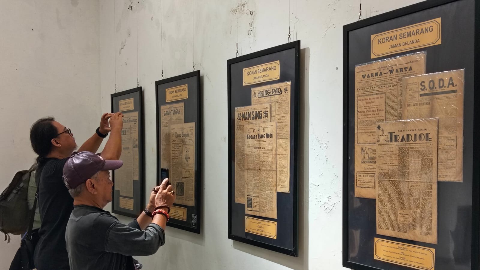 Mengabadikan koleksi koran-koroan era tahun 30-an di Rumah Pohan Artspace Semarang. (FOTO: Christian Saputro)