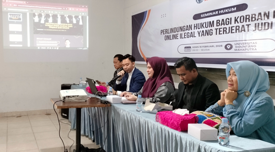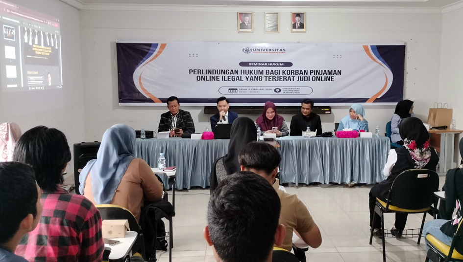 Seminar Hukum bertema “Perlindungan Hukum Bagi Korban Pinjaman Online Ilehal yang Terjerat Judi Online” kerja sama IKADIN Palembang dan Unsigma. (FOTO: Maspril Aries)