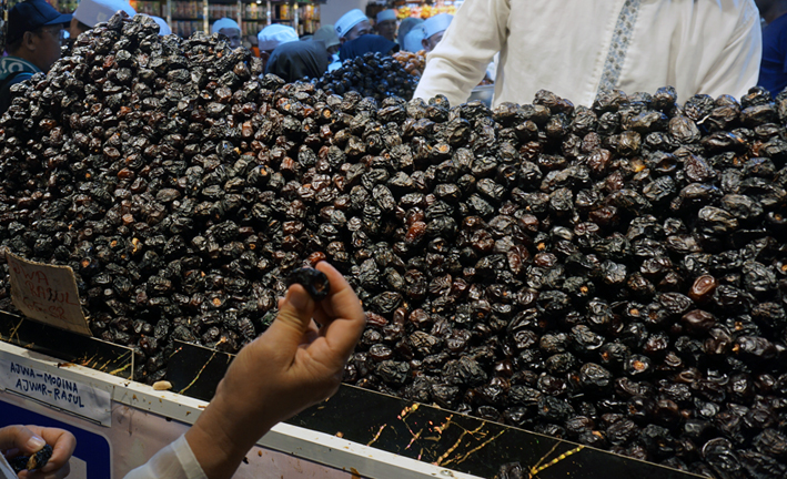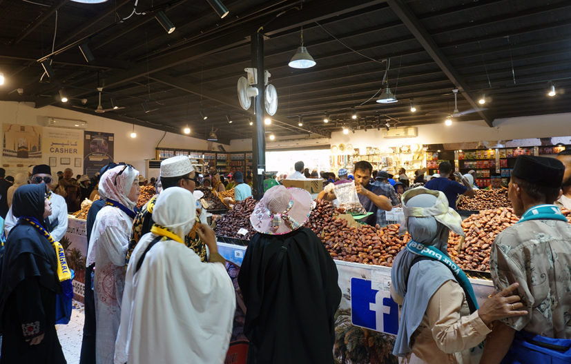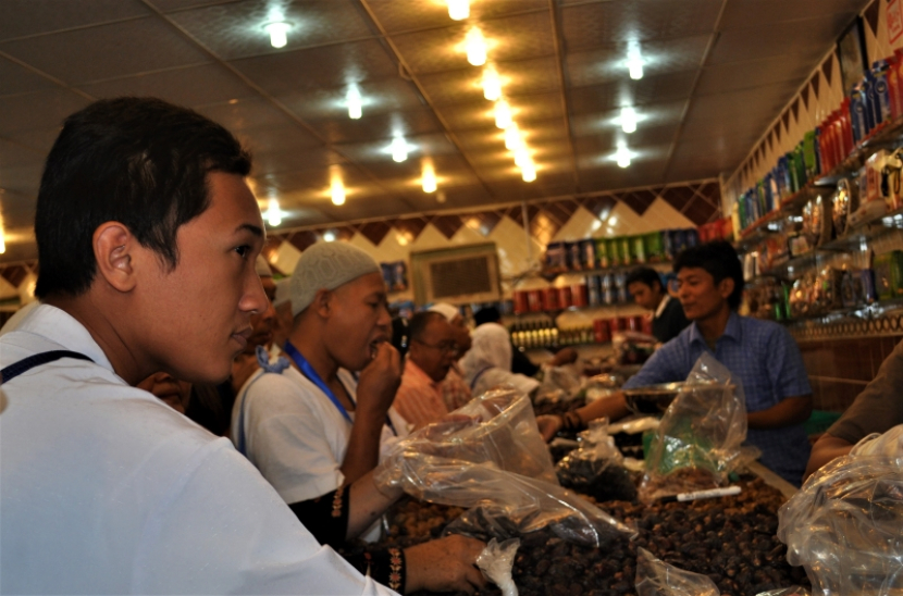 Jemaah umrah berkunjung ke pasar kurma di Madinah. (FOTO: Safira Yasmin)