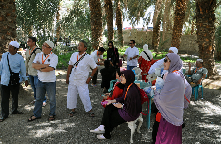 Jemaah umrah berkunjung ke kebun kurma di Madinah. (FOTO: Maspril Aries)