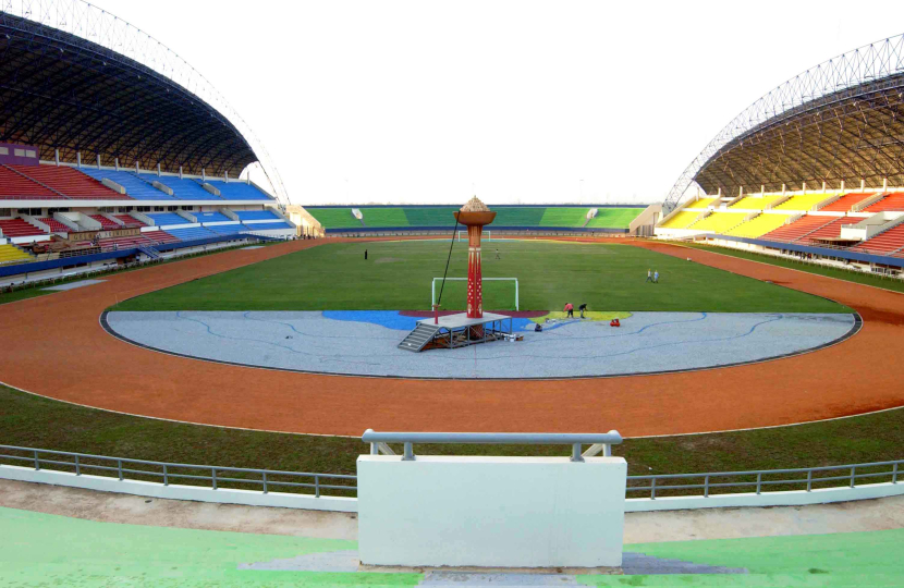 Prosesi pemancangan tiang pertama ini bukan sekadar seremoni, melainkan sebuah penaklukan. “Untuk menjangkau lokasi groundbreaking kami saat itu naik perahu, karena dengan transportasi itu yang terdekat”, kenang seorang wartawan surat kabar nasional. Pembangunan stadion ini berlangsung bertahap dan akhirnya rampung pada tahun 2004, dan menjadi tempat untuk pembukaan serta penutupan PON XVI