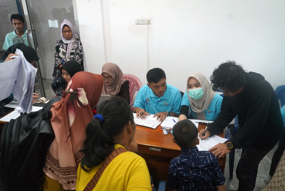 Tim dari RS Bukit Asam Mandiri melakukan pemeriksaan administrasi kepada calon “pahlawan cilik” peserta khitanan massal di Lahat. (FOTO: Humas PTBA)