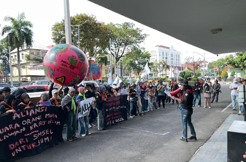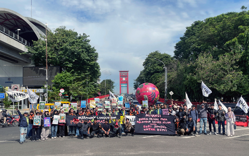 Di tengah kepungan beton dan aspal yang panas, ratusan anak muda dari berbagai elemen—mulai dari aktivis lingkungan, pencinta alam, aktivis hukum, hingga mahasiswa — berkumpul. Mereka merupakan aliansi WALHI Sumsel, MASOPALA Unsri, KEMASDA, YM3, MAFESRIPALA, GEMAPALA WIGWAM FH Unsri, BRIMPALS FH UMP, HDC, WAMAPALA GEMPA, HIMAPES, SP Palembang, LBH Palembang, LIWAPALA, HIMASYLVA FP UMP, PALASPA PGRI, Lingkar Peduli, GMS, MABIDAR, dan BEM FE Unsri.