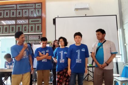 Para sahabat Difa autis yang menggelar pameran “BIRU” bersama mentornya pelukis Giovanni Susanto tampil di Klarisan Coffe and Eatary Semarang (FOTO: Christian Saputro) Oleh: Christian Sapu...