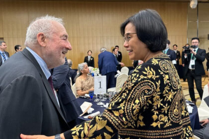 Menteri Keuangan Sri Mulyani Indrawati bertemu Profesor Joseph Stiglitz pada jamuan makan siang bersama dengan Menteri-Menteri Keuangan G7 di Niigata, Jepang. (FOTO : IG @@smindrawati) KAKI BUKIT, Nii...