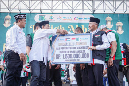 Pj Bupati Muba Apriyadi (kanan) menyerahkan donasi warga dan Pemkab Muba untuk Palestina sebesar Rp1,5 miliar. (FOTO : Dinkominfo Muba) KAKI BUKIT, Sekayu – Pemerintah Kabupaten Musi Banyuasin (Muba),...