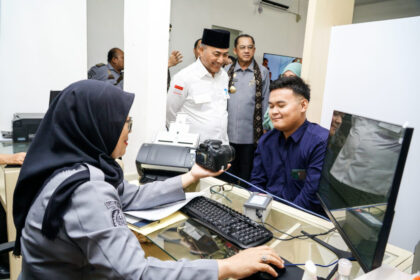 Bupati Muba Apriyadi menyaksikan proses pembuatan paspor di UKK Kantor Imigrasi Kelas 1 TPI Palembang yang baru beroperasi di Sekayu. (FOTO : Dinkominfo Muba) KAKI BUKIT, Sekayu – Direktorat Jenderal ...
